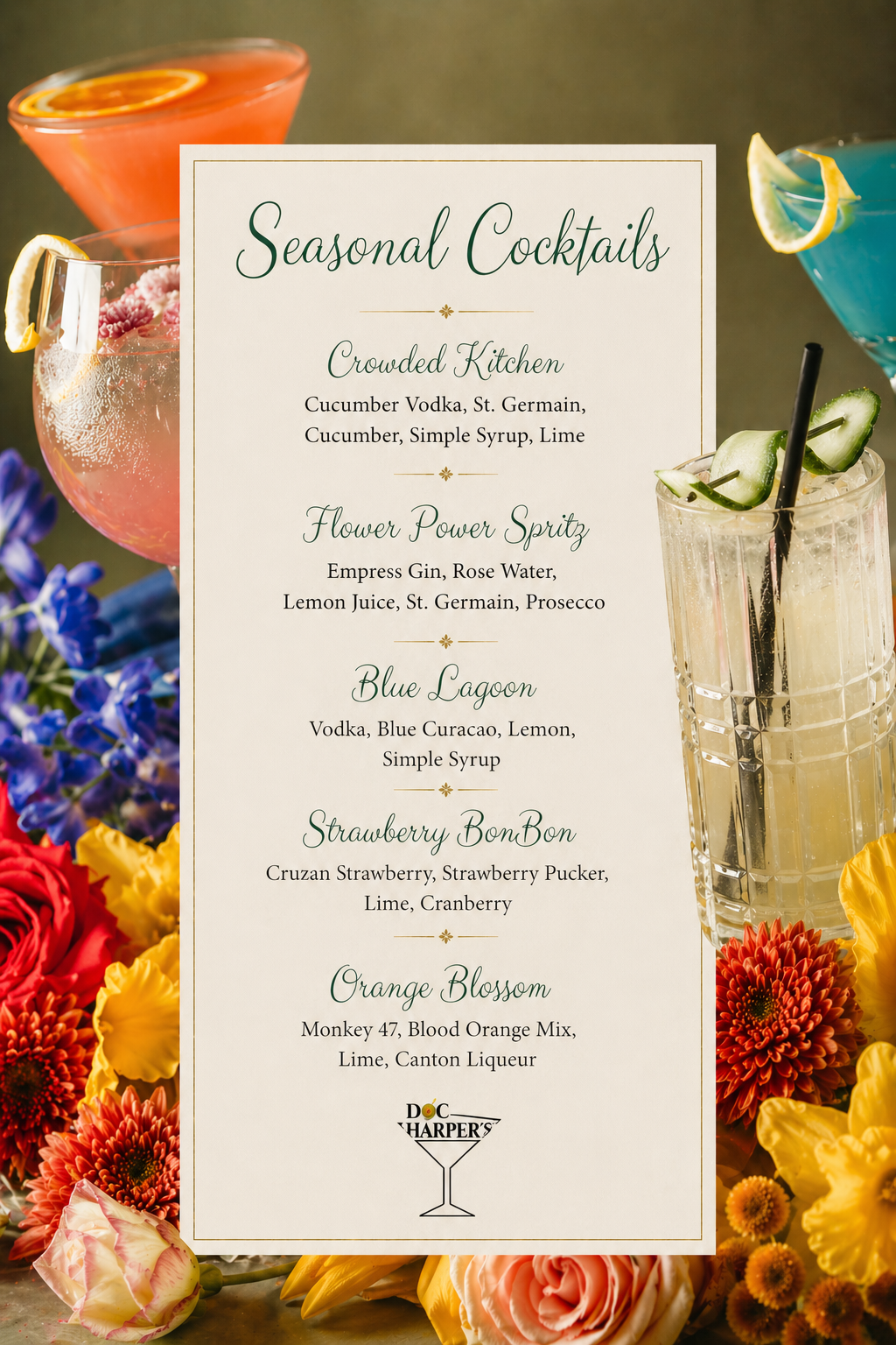 We believe in creating an environment where every evening can be a memorable experience at Doc Harper's. Everything from the decor and music to the exceptional service from our team members is all curated to offer the perfect atmosphere for you to create memories during special occasions and casual nights out.